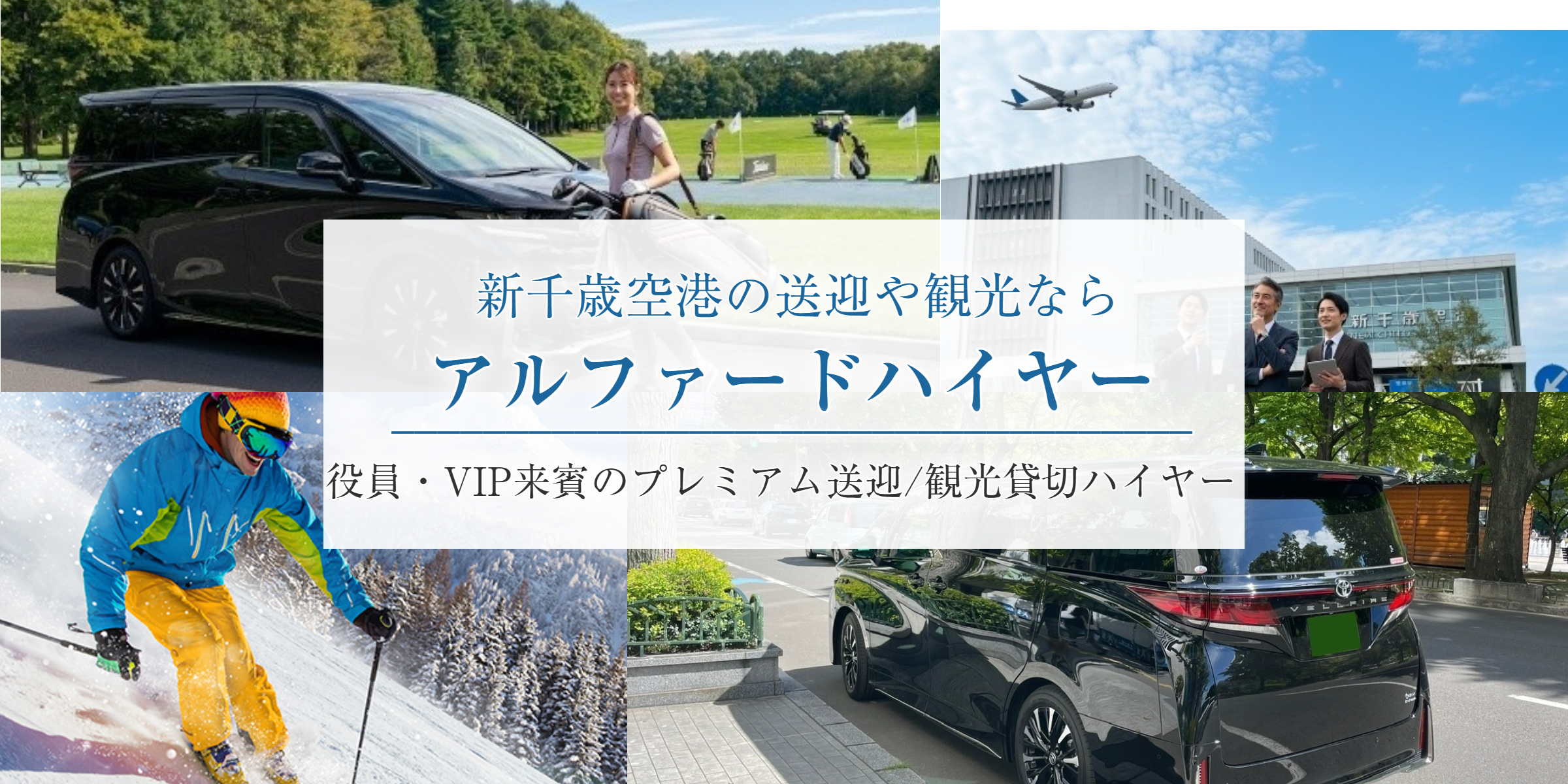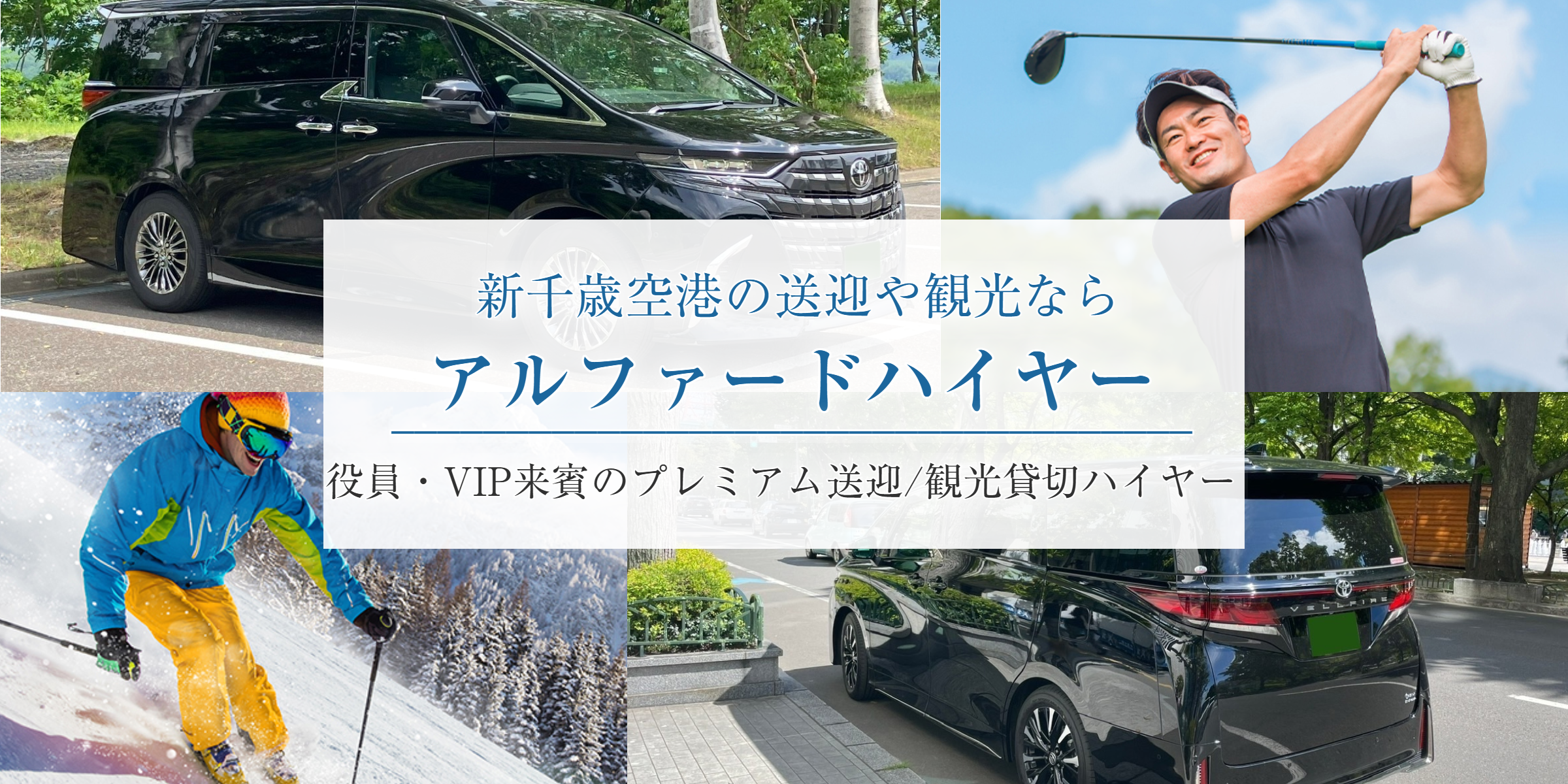 新千歳空港⇔札幌市内及び、ニセコ・ルスツなどのスキーリゾート送迎、 役員・VIP・来賓の送迎などビジネスシーンのほか、ゴルフ場送迎、貸切観光タクシーなどを主なサービス内容として運行しております。 車両はハイグレードなアルファード・ヴェルファイア40系を使用しており、ゆったりとした広い車内スペースで快適に移動でき、様々な場面でご好評をいただいております。